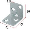 Уголок крепежный мебельный усиленный 26х26х30х1,5 мм, оцинкованная сталь - фото