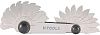 Измерение производится методом перебора (совмещения) пластины с измеряемой резьбой. Конструкция набора обеспечивает возможность свободной замены любого шаблона. Выполнен из инструментальной стали, прочные металлические винты надежно фиксируют пластины.