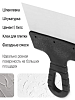 - Шпатель предназначен для работы с широким спектром материалов: декоративной штукатуркой, гипсовыми и цементными смесями, плиточным клеем, фасадными составами и шпаклевкой.